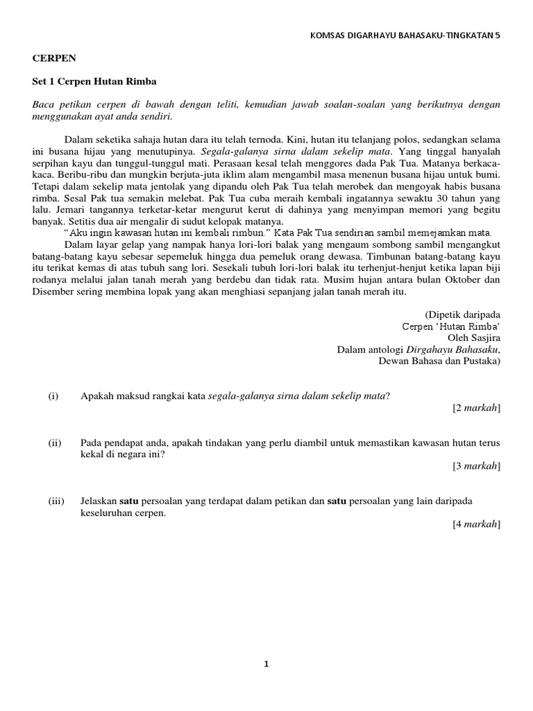 Kertas soalan ini bukan hak milik. Tindakan Tun Perak mengarahkan orang-orangnya membawa anak isteri bersama-sama untuk berperang. 3 Bahagian Komsas Tingkatan 4-5 Soalan 2b Petikan Cerpen Baca petikan cerpen di bawah dengan teliti kemudian jawab soalan-soalan yang berikutnya dengan menggunakan ayat anda sendiri.